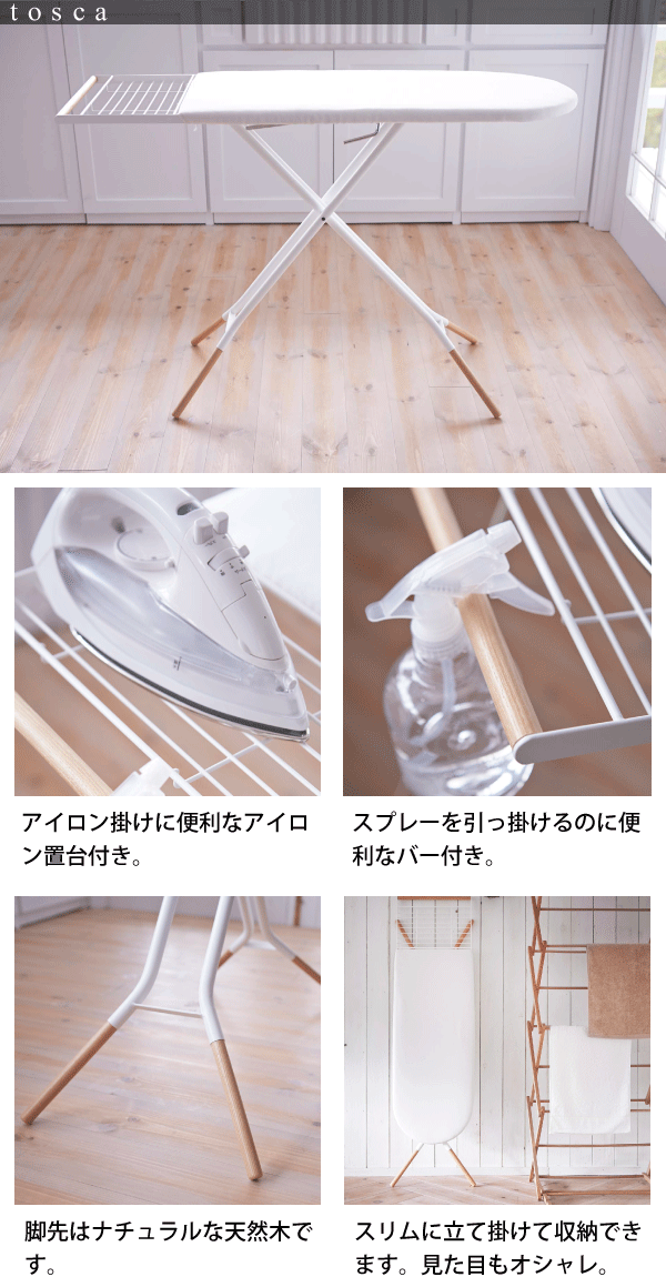 商品情報 シンプルでナチュラルな木の風合いが素敵なアイロン台です 真っ白でシンプル。