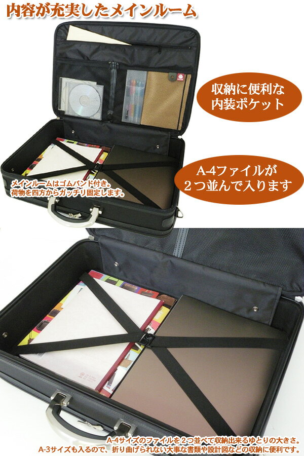 【大好評P5倍】【送料無料】安心の国産豊岡製鞄 A4が2つ並ぶ、A3書類収納可能 アタッシュケース 24-0311 商品価格:23,613円 レビュー件数:0件 レビュー平均:0(5点満点) 楽天で購入 トップページへ