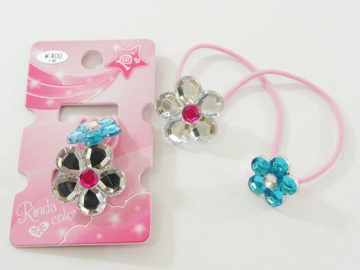 JP花ミラーコンビ CLR/BL ヘアゴム 子供 髪留め 2個セット ゴム ポニー ヘアアクセサリー ヘアアクセ 髪飾り レディース 女の子 花 フラワー キラキラ かわいい 新学期